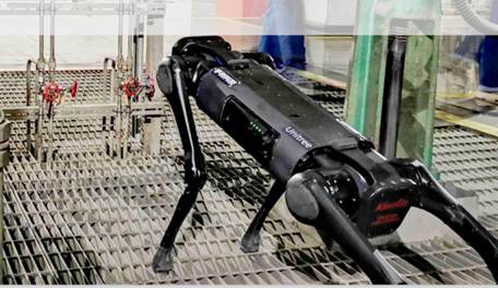 在智能生产线展区,你可以看到一只机器狗正在表演各种高难度动作。贵州省网络安全和信息化协会副理事长兼秘书长周黎辉介绍:“这一只机器狗是宏图公司对工业部量标识解析体系创新的一个研究。基于工业部量标识解析体系的机器狗,可以代替人类到达不能到达的地方,代替人类去进行巡视巡检,帮助我们完成各项困难的工作。同时还推出了第一工业部的标识解析的个性化定制的,一体化的生产线的模拟平台,从网络的订单到设计生产加工检验校验和存储形成一体化的应用。”