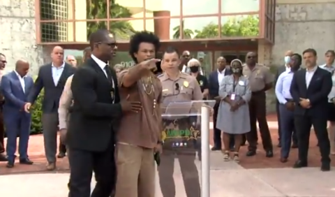 海外网6月1日电 当地时间5月30日凌晨,美国佛罗里达州迈阿密发生一起大规模枪击事件,造成23人中弹,2人死亡。在31日的一场新闻发布会上,一名遇害者的父亲悲愤地闯入现场,不断大喊着“我的孩子被杀了”。
