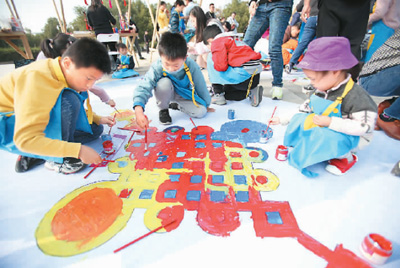 在家长的陪伴下,孩子们在南京科技馆绘制非遗画卷。孙忠南摄(人民图片)