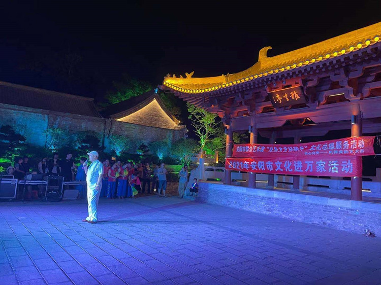 5月30日晚,群众在安阳仓巷街举办文艺活动。(海外网 孟庆川摄)