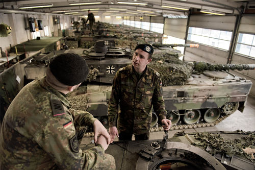 资料图:由来自德国和荷兰的军队组成的欧洲坦克军营。(图片来源:《纽约时报》)