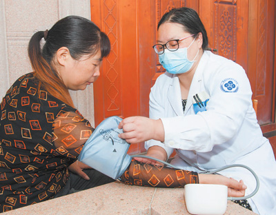 去年3月,东阳市六石街道岩口村村民吴大妈被确诊为高血压。此后,街道卫生服务中心公卫科医生王彩芳成了她的签约家庭医生,每周都会上门随访,跟踪身体状况。
