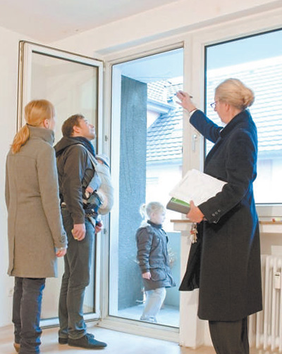 德国一名房屋租赁中介正带着一家人看房。