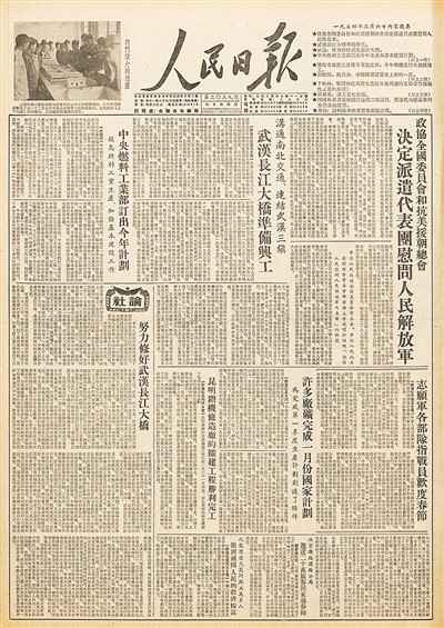 “有桥千程近,隔水咫尺遥”。1954年2月6日,人民日报头版刊发报道《武汉长江大桥准备兴工》,并配发社论《努力修好武汉长江大桥》。全国人民备受鼓舞:这将是万里长江第一桥!