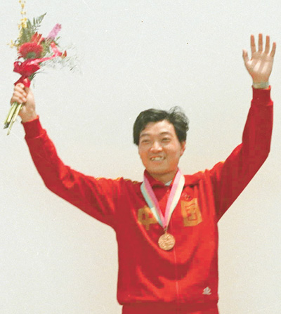 领奖台上的许海峰。 新华社发