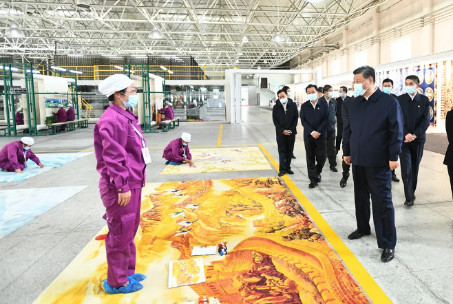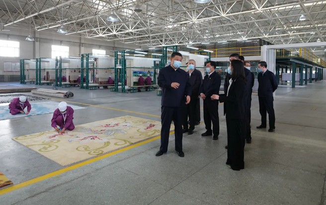 6月7日下午,习近平总书记来到青海圣源地毯集团有限公司,走进生产车间、设计部门察看产品生产、设计情况。习近平表示,藏毯是一种特色产业,你们很好把传统工艺和现代工艺结合在一起,契合了个性化、多样化的市场需求。藏毯产业是符合青海实际的产业,有扶贫致富、推进乡村振兴的作用,还有促进民族团结的作用。习近平希望青海发展更多这样的特色产业,靠创新实现更好发展。