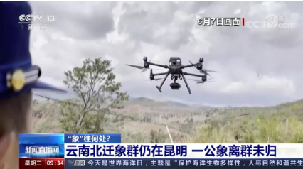当地政府出动无人机监控大象活动。图源:央视新闻