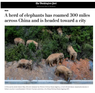 《华盛顿邮报》称,“整个中国已被由15头亚洲象构成的家庭‘惊呆了’,它们在该国漫游了300英里”。报道认为,经过20年的保护,西双版纳和邻近地区的野生大象数量几乎翻了一番,这无疑是中国大象保护取得的成绩。