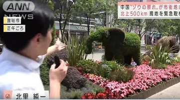此外,日本朝日电视台记者在昆明街头发现了“大象绿植”,然后像发现了什么秘密一般,对着镜头说,“如此特色的造型意味着,当地与大象间长久以来的缘分”。