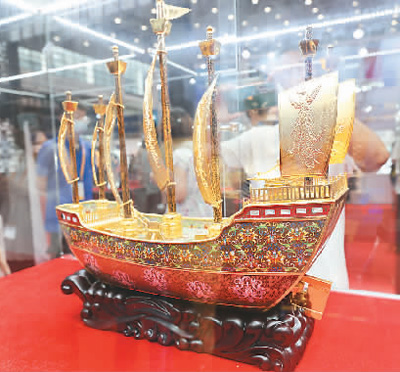 首届中国国际消费品博览会现场展出的景泰蓝工艺品。新华社记者 张丽芸摄