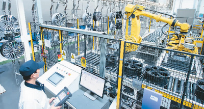 记者了解到,中信戴卡生产的车轮、转向节等零部件全部为铝制轻量化产品。相较于传统钢铁材质零部件,铝制产品可帮助实现整车减重,从而降低燃油消耗,最终减少二氧化碳排放。