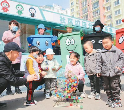 近日,山东省东营市东营区环卫工人走进玉景社区“绿色小屋”,为市民讲解低碳生活知识。 刘智峰摄(人民视觉)