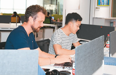 海南自由贸易港海口复兴城互联网信息产业园是以数字贸易、智能物联、金融科技和国际创新四大产业集群为主导的数字经济产业专业园区。该园区目前注册企业3400家,其中高新技术企业68家、外资企业201家。 新华社记者 杨冠宇摄