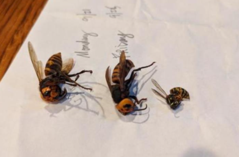 “杀人大黄蜂”又名亚洲大黄蜂,是世界上体型最大的黄蜂,被认为是入侵物种。“杀人大黄蜂”威胁着蜜蜂和本地黄蜂的生存,能在几个小时内毁掉蜂巢。虽然这种大黄蜂很少攻击人类,但如果被其毒刺多次刺中,也可导致人类死亡。