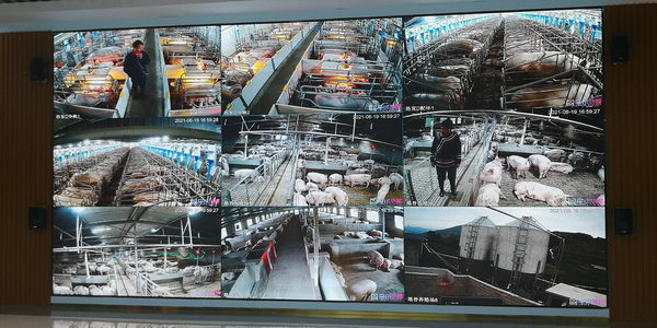 再接下来是生产区。生产区主要功能是母猪配怀和分娩,配种110天后转入分娩舍,分娩21天后转入全县11个乡镇建成的83个标准化代养点。