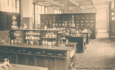 20世纪20年代沙勒罗瓦劳动大学化学实验室图片。资料图片