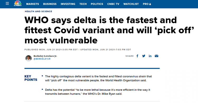 美国消费者新闻与商业频道报道了“德尔塔”变异毒株的相关情况
