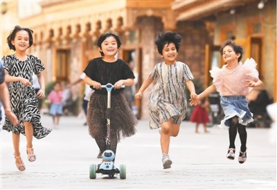 少年儿童是祖国的未来,民族的希望。我们党始终高度重视少年儿童、亲切关心少年儿童,让孩子们有一个幸福的童年和美好的未来。图为孩子们在新疆和田市团城的鸽子巷玩耍。
