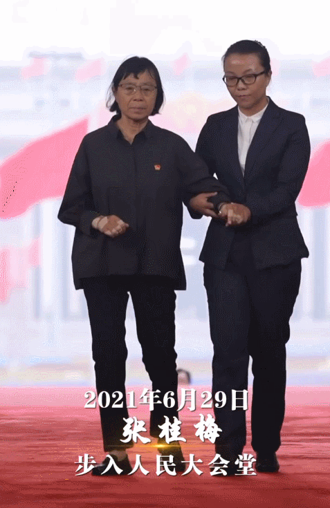 “七一勋章”获得者张桂梅步入人民大会堂。图源:新华社