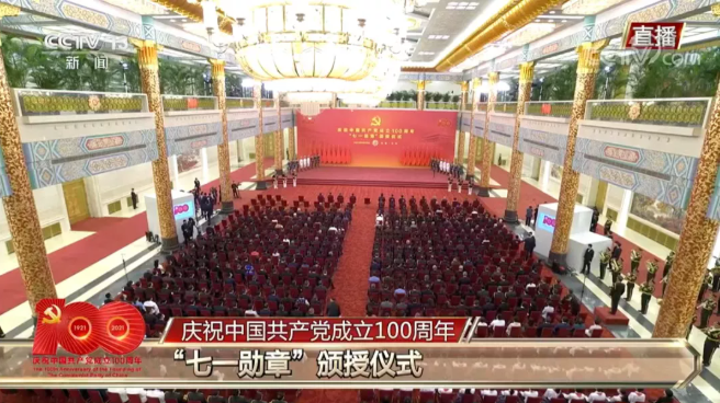 “七一勋章”颁授仪式现场(图源:央视新闻)