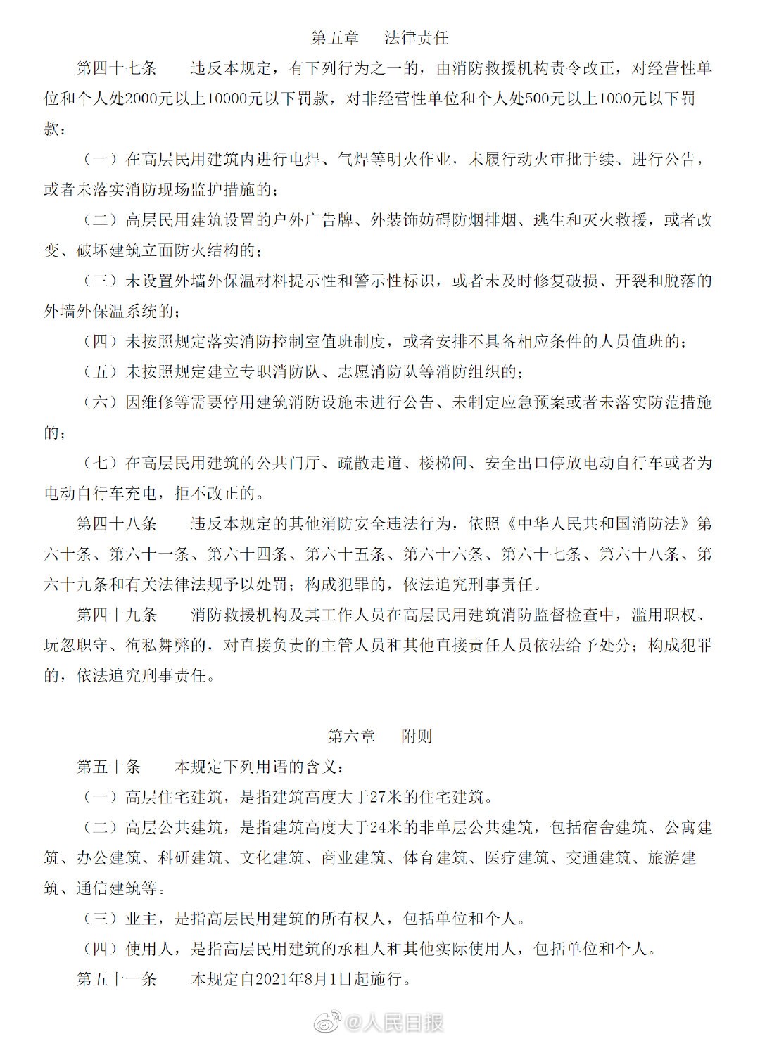近日,应急管理部公布《高层民用建筑消防安全管理规定》,其中提到:8月1日起,在高层民用建筑的公共门厅、疏散走道、楼梯间、安全出口停放电动自行车或者为电动自行车充电,拒不改正的非经营性个人,最高可处以1000元罚款。
