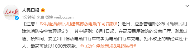 注意!8月起高层民用建筑停放电动车可罚款