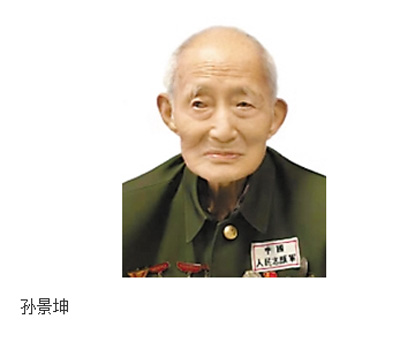孙景坤,男,汉族,1924年10月生,1949年1月入党,辽宁庄河人,辽宁省丹东市元宝区金山镇山城村原第一生产队队长。永葆革命本色的战斗功臣,先后参加四平、辽沈、平津、解放长沙、解放海南岛、抗美援朝等战役战争,荣立一等功一次、二等功多次。作为英雄报告团成员,受到毛主席等党和国家领导人亲切接见。退役后毅然回乡带领群众改变家乡面貌,是共产党员吃苦在前、公而忘私崇高品质的典范。荣获“时代楷模”称号和“抗美援朝一级战士荣誉勋章”。