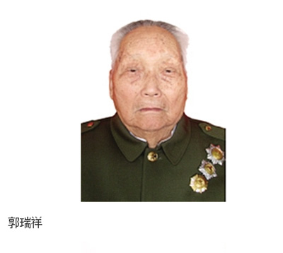 郭瑞祥,男,汉族,1920年12月生,1937年3月入党,河北魏县人,贵州省都匀军分区原副政治委员。矢志坚守初心的红军战士。16岁投身革命,抗日战争时期,先后参加冀南战斗、反扫荡战役、肖渠战斗、曹县东南反顽战役等,作战英勇。解放战争时期,在情况非常危急、部队成分不纯的情况下,及时整顿健全组织、加强党的领导,有效挽救危局。离休后生活简朴,始终保持红军的政治本色。荣获“三级独立自由勋章”、“三级解放勋章”、“独立功勋荣誉章”。