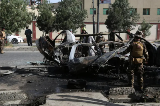 6月12日,阿富汗安全人员在喀布尔的爆炸现场调查。图源:新华社