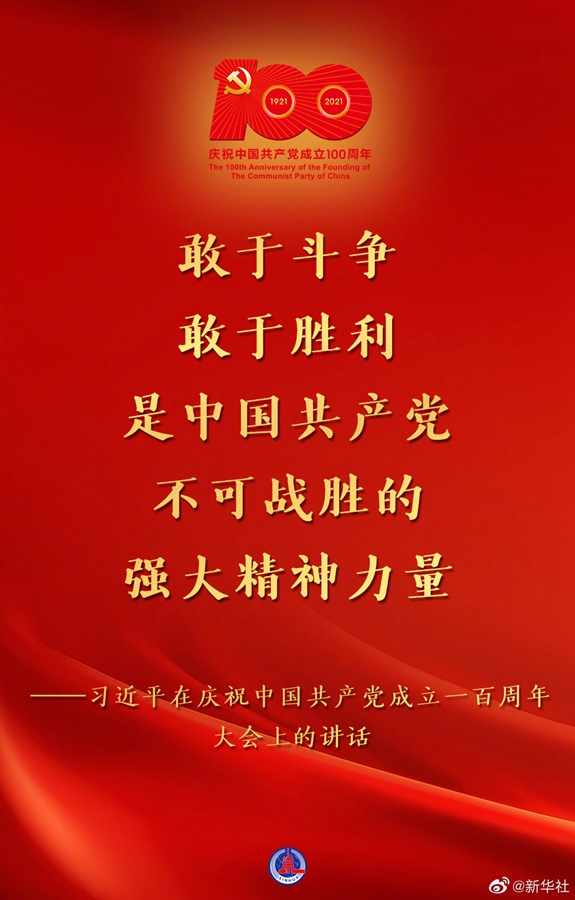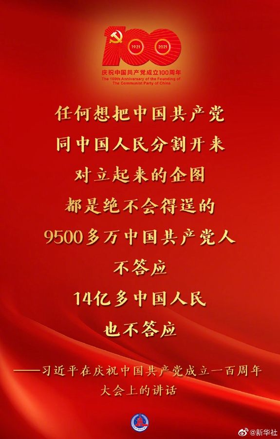 习近平在庆祝中国共产党成立一百周年大会上的