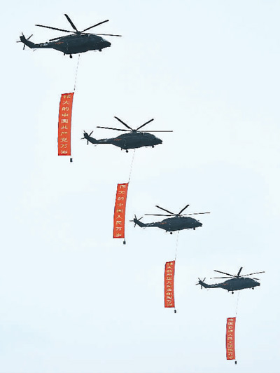 7月1日上午,庆祝中国共产党成立100周年大会在北京天安门广场隆重举行。图为大会开始前的飞行庆祝表演。新华社记者戴天放摄