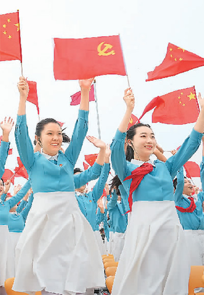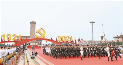 百年征程波澜壮阔,百年初心历久弥坚。7月1日上午,庆祝中国共产党成立100周年大会在北京天安门广场隆重举行,各界代表7万余人以盛大仪式欢庆中国共产党百年华诞。中国人民解放军71架战机振翅长空,100响礼炮响彻云霄,中国人民解放军联合军乐团奏响雄壮的《义勇军进行曲》,共青团员和少先队员代表集体致献词……城楼上下融通起真情交汇的心桥,广场内外汇聚成欢歌笑语的海洋,共同庆祝中国共产党百年华诞,共同祝愿祖国和世界的明天更加美好。