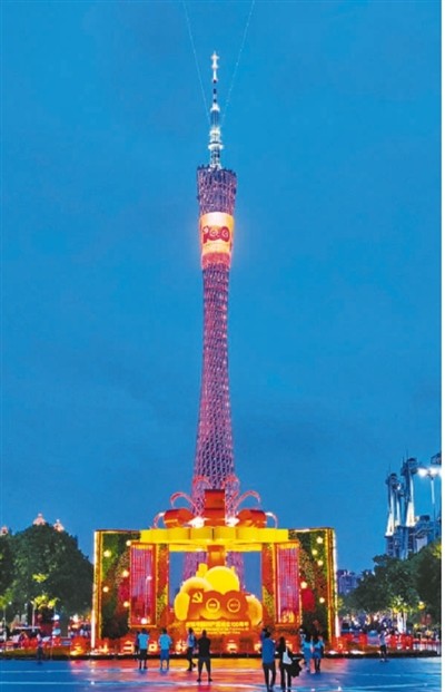 近日,广东广州点亮城市地标,庆祝党的百年华诞。宋金峪摄(人民视觉)