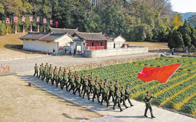 武警福建总队龙岩支队组织官兵在古田会议会址前重温初心。 李 涛摄