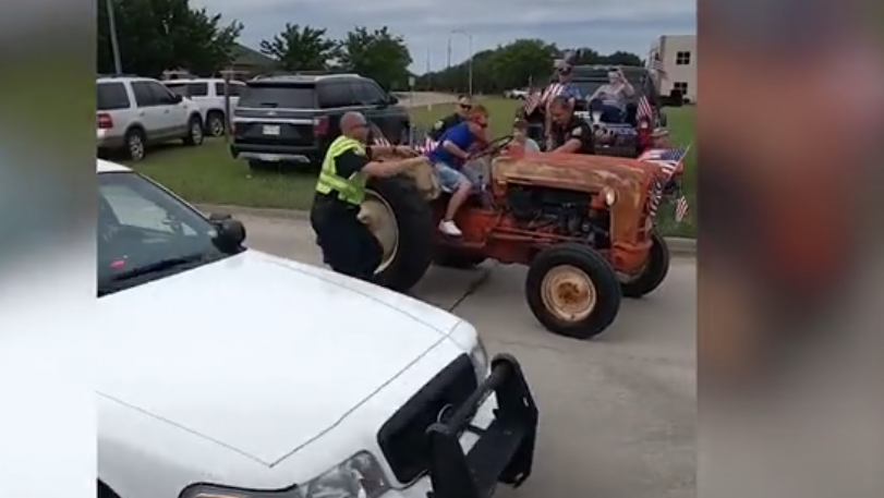 海外网7月5日电 当地时间4日,美国得克萨斯州一个小镇举行独立日游行活动。一名61岁老妇驾驶她的古董拖拉机冲撞游行队伍,警方多次警告无效后将其逮捕。