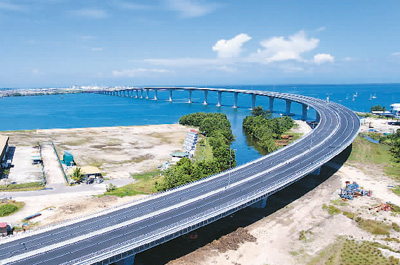 文莱大摩拉岛大桥。连接文莱摩拉区和海上摩拉岛的重要桥梁,其建成改写了大摩拉岛无桥梁连接文莱大陆的历史。中交集团供图