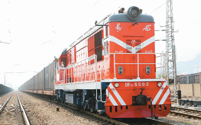 2021年6月22日,一列班列从江苏连云港港铁道编组场驶出,开往中亚地区。王 春摄(人民图片)