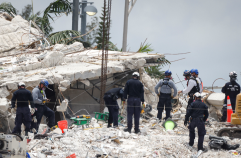 综合美联社及美国有线电视新闻网5日报道,卡瓦在当晚的新闻发布会上表示,随着搜救人员从倒塌的公寓楼废墟中又找到了一名遇难者,目前的死亡人数已上升至28人,仍有117人下落不明。这位县长也表示,在决定爆破大楼前,救援小组在现场搜遍了壁橱、床下,甚至使用了带有热成像功能的无人机,寻找可能被留在废墟中的宠物。“拆除前,我们采取了一切可能的行动,在大楼里寻找任何宠物和动物”,卡瓦这样表示。