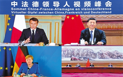 三国领导人还就非洲议题交换意见。习近平指出,非洲是发展中国家最集中、抗击新冠肺炎疫情和实现经济复苏任务最艰巨的地区,更是发展潜力最大的大陆。中方已经并正在向40多个非洲国家及非盟委员会提供疫苗,积极支持非洲提升疫苗本地化生产能力。中方已同19个非洲国家签署缓债协议或达成缓债共识,并建设性参与“非洲绿色长城”等可持续发展计划。希望欧方加大对非洲的支持和帮助,向有急需的非洲国家提供更多疫苗,帮助非洲应对好债务压力,早日实现非洲经济复苏和绿色低碳发展。欢迎法国、德国加入中非共同发起的“支持非洲发展伙伴倡议”,开展三方、四方或多方合作。