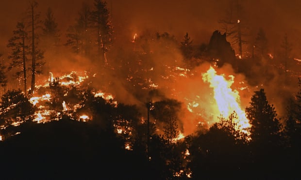 熔岩大火的火焰沿着美国97号公路和加州杂草以北的大泉路附近的山脊燃烧。(图片来源:美联社)