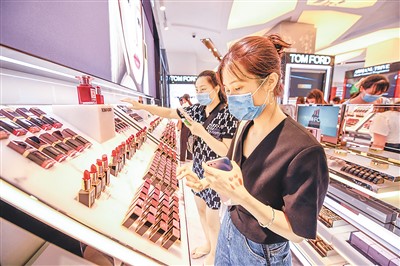 工资增长拉动了居民消费。海南海口日月广场免税店内,种类多样的免税品吸引众多离岛游客前来购物。王程龙摄(人民视觉)