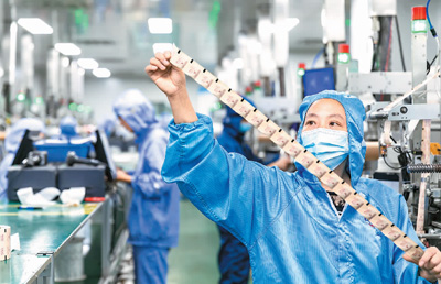 虽受疫情影响,但许多中小企业去年平均工资继续实现增长。7月5日,江苏省海安市孙庄街道欧凯包装科技公司10万级净化车间内,工人们正在加工脱氧剂订单,努力工作。翟慧勇摄(人民视觉)
