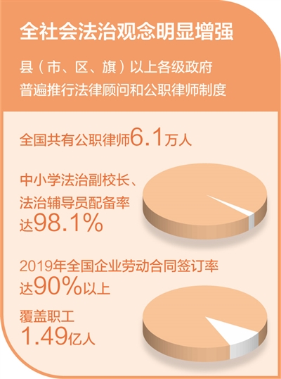 6月7日,在十三届全国人大常委会第二十九次会议上,受国务院委托,司法部部长唐一军作关于“七五”普法决议贯彻落实情况的报告时介绍,我国第七个五年法治宣传教育规划顺利实施完成。5年来,党对普法工作的领导全面加强,重大主题普法活动扎实开展,“谁执法谁普法”普法责任制全面实行,法治乡村建设有序推进,社会主义法治文化繁荣发展,全社会法治观念明显增强,全民法治素养明显提升。