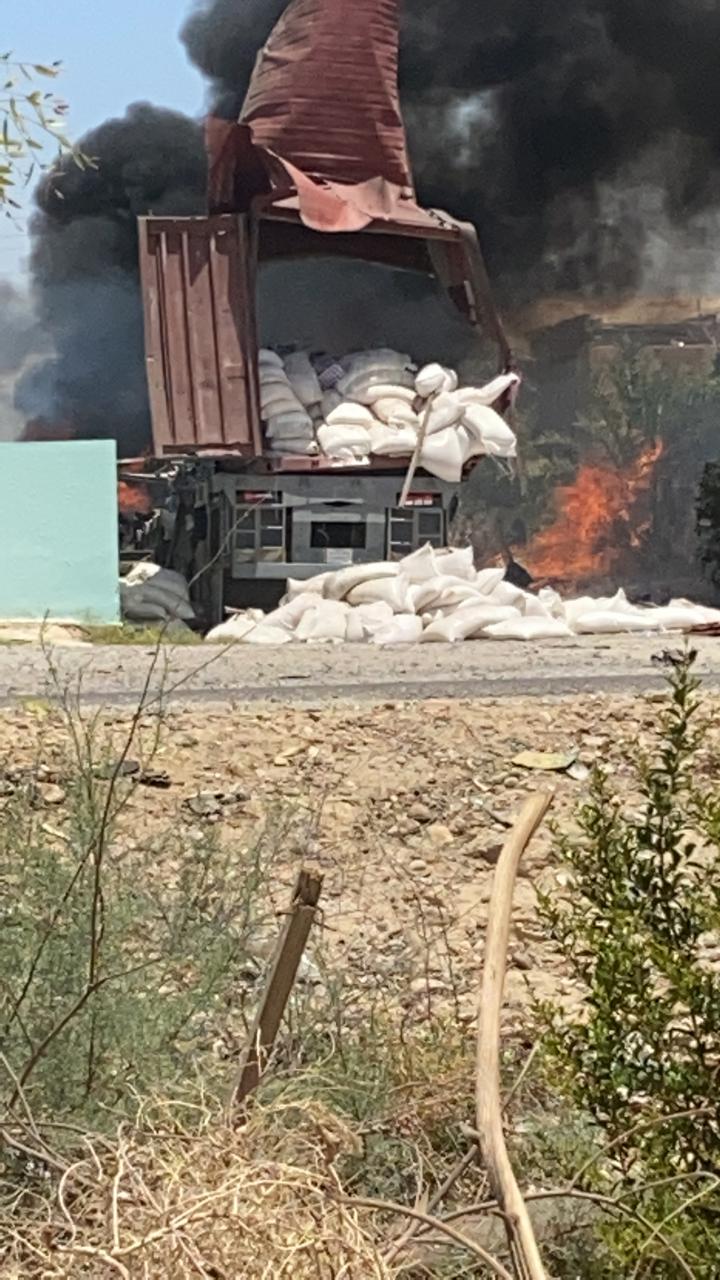 伊拉克安全部门开展调查后,在基地附近农田发现一辆货车,该车以装载面粉为掩护,藏匿了一个火箭弹发射平台,袭击基地的14枚火箭弹都是从这辆货车中发射的。现场照片显示,剩余未发射的火箭弹也被引爆并引发火灾,对附近的居民房屋与建筑造成破坏。(海外网 刘强)