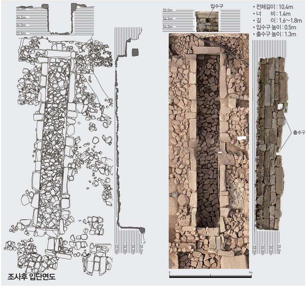 韩媒称,其特征是底部和四壁都铺设石头,设有进水口和出水口,净化原理类似现代的化粪池。推测是下级官吏、宫女和守卫使用。