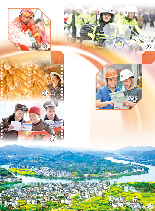 图⑤:山东省临沂市郯城县港上镇港上五村派出所民警向老人介绍安全防范常识。