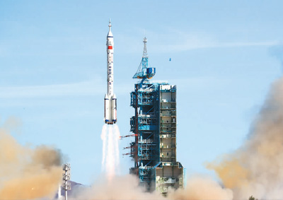 搭载神舟十二号载人飞船的长征二号F遥十二运载火箭发射。