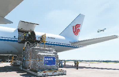 中国国际货运航空公司联合跨境电商物流企业开通的包机航线在浙江杭州萧山国际机场装货。新华社记者 黄宗治摄