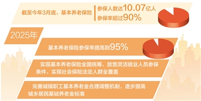 合并新型农村社会养老保险、城镇居民社会养老保险,稳妥推进机关事业单位养老保险制度改革,推动企业职工基本养老保险基金实现省级统收统支……党的十八大以来,我国基本建成覆盖全民、城乡统筹、权责清晰、保障适度、可持续的多层次社会保障体系。截至今年3月底,我国基本养老保险参保人数达10.07亿人,基本养老保险参保率超过90%。