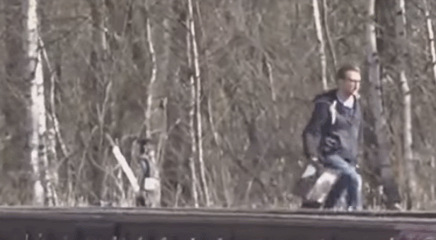 美驻俄大使馆人员偷走铁路信号灯 作案全程画面